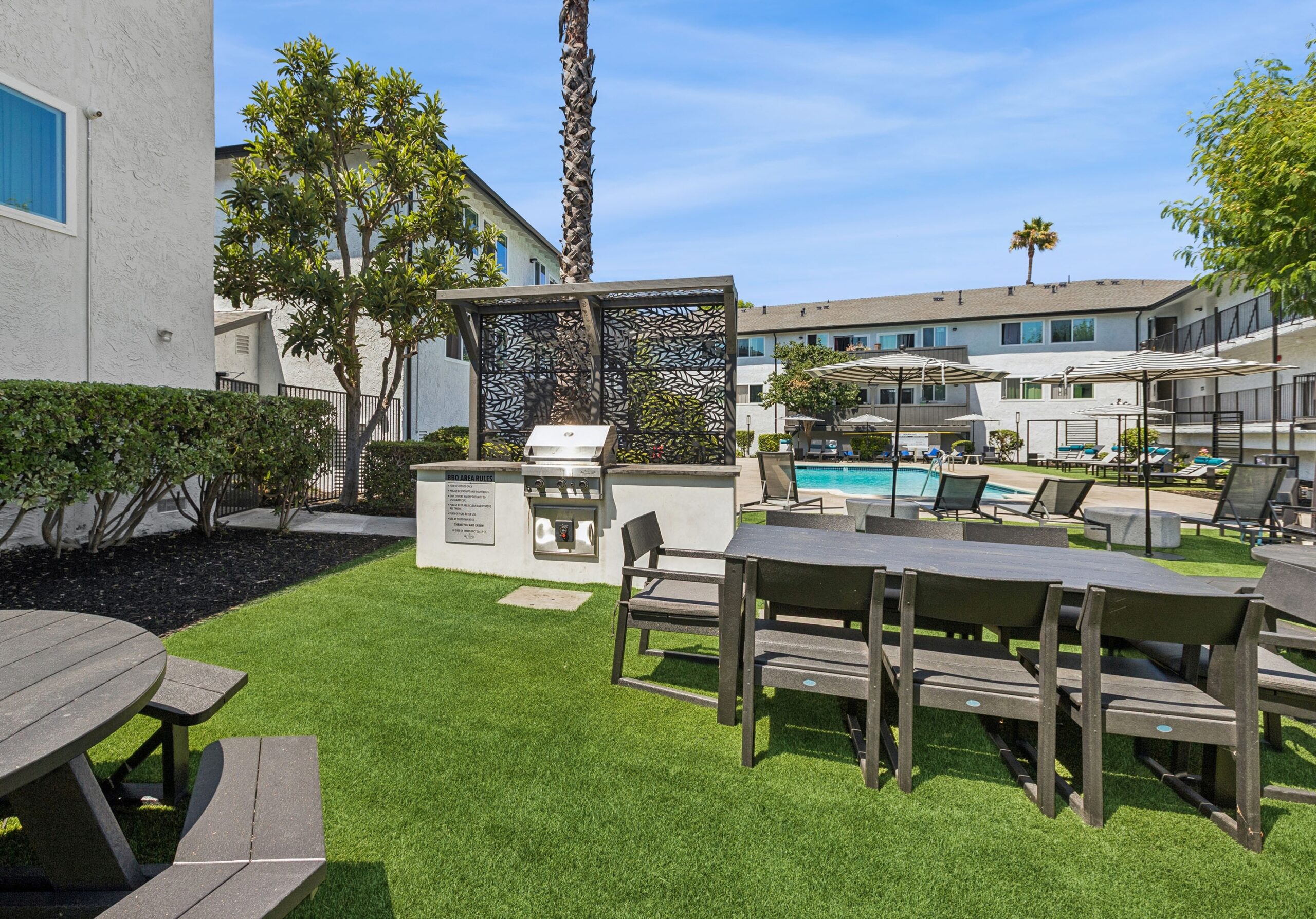 Your wellness routine finds a perfect home in our 24-hour fitness center with free weights, just steps away from your front door. The sparkling pool nestled among lush landscaping creates a tranquil retreat where you can unwind and recharge whenever you need. The thoughtfully designed covered parking protects what matters to you, giving you more time to enjoy the community BBQ grills and outdoor gathering spaces with neighbors.